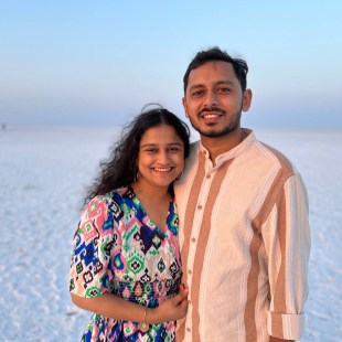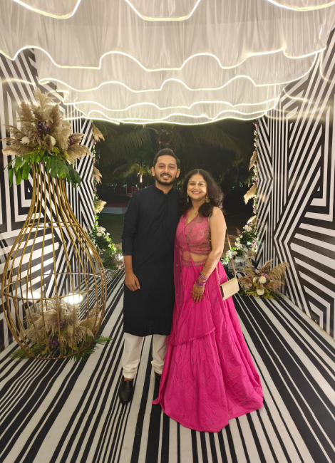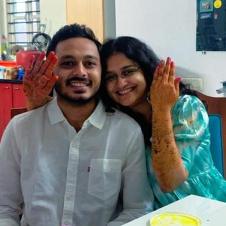 Born in 1997, raised in Ahmedabad, completed her undergraduation from VS hospital and is currently pursuing internal medicine at GCS Hospital. She is both fire and storm. She has a personality completely divergent of the groom and yet they share the same fundamentals of life. She is an extrovert, a bollywood buff with love for reading (Only Fiction)! She is the raging storm to Karan's calm.